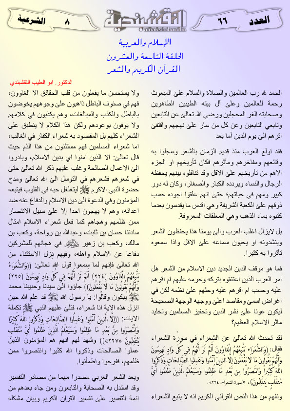 جانب من حديث أحد مشايخ الطريقة النقشبندية ( قدس الله سره )