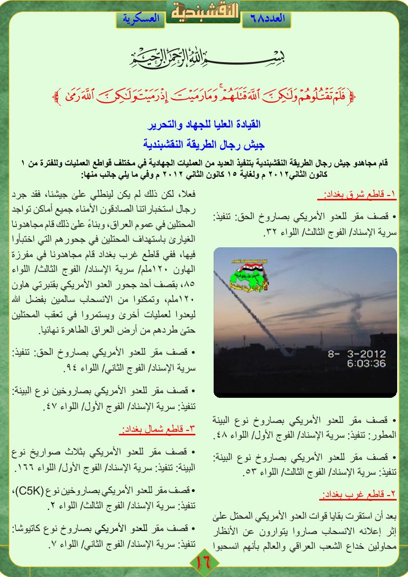 جانب من العمليات الجهادية للفترة من 1 كانون الثاني 2012م ولغاية 15 كانون الثاني 2012م