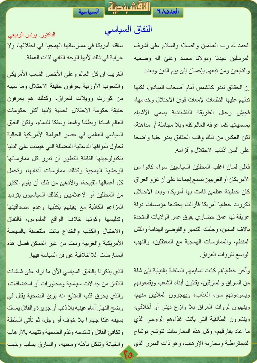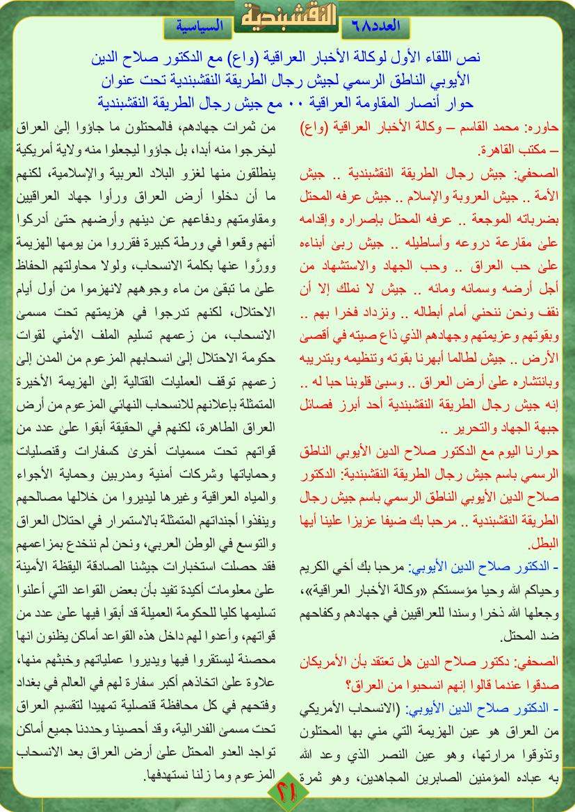 نص اللقاء الأول لوكالة الاخبار العراقية (واع) مع الدكتورصلاح الدين الايوبي الناطق الرسمي لجيش رجال الطريقة النقشبندية