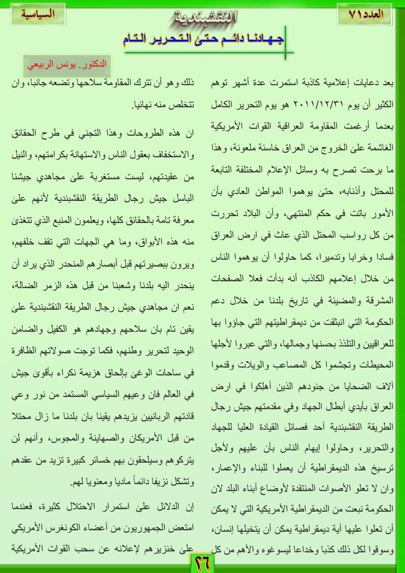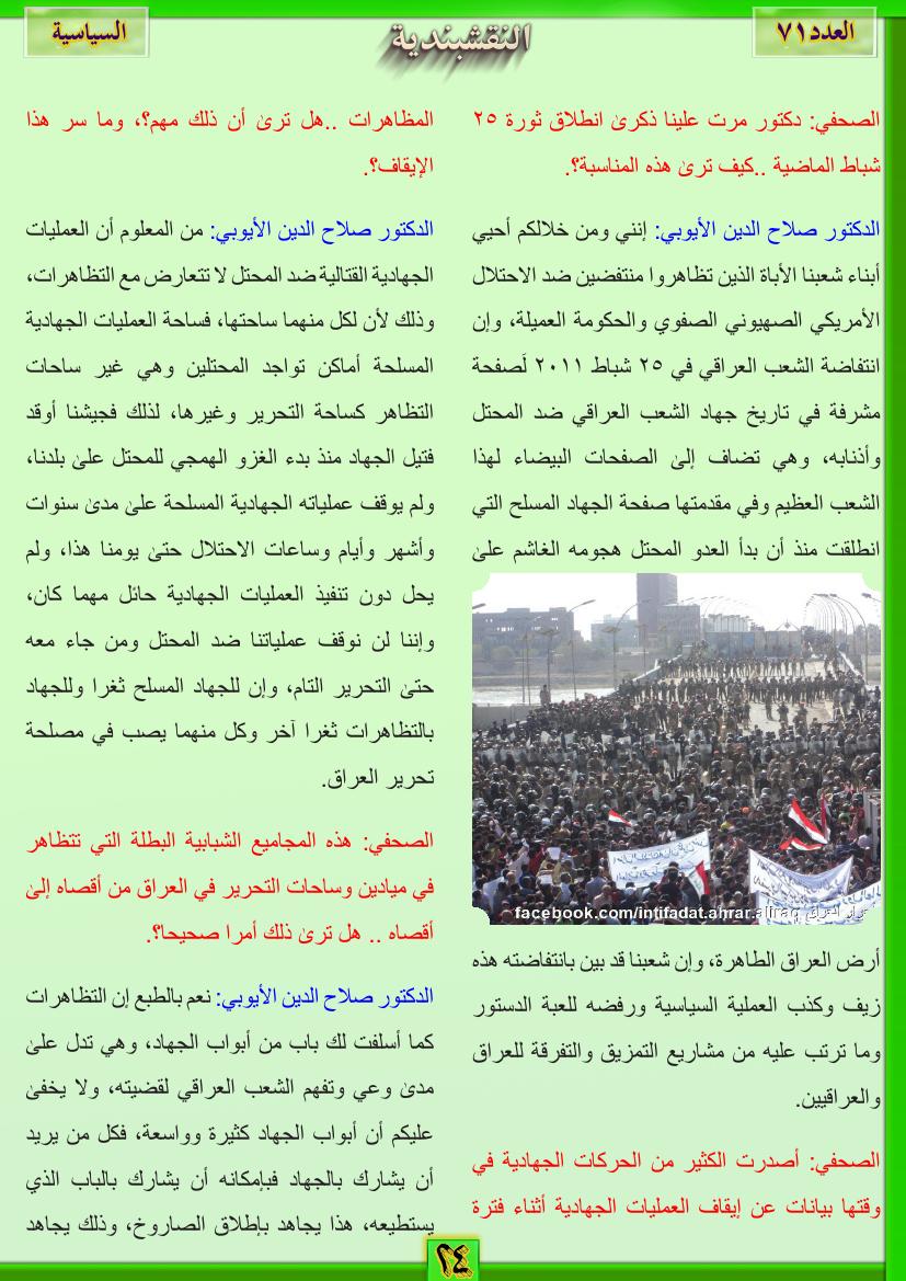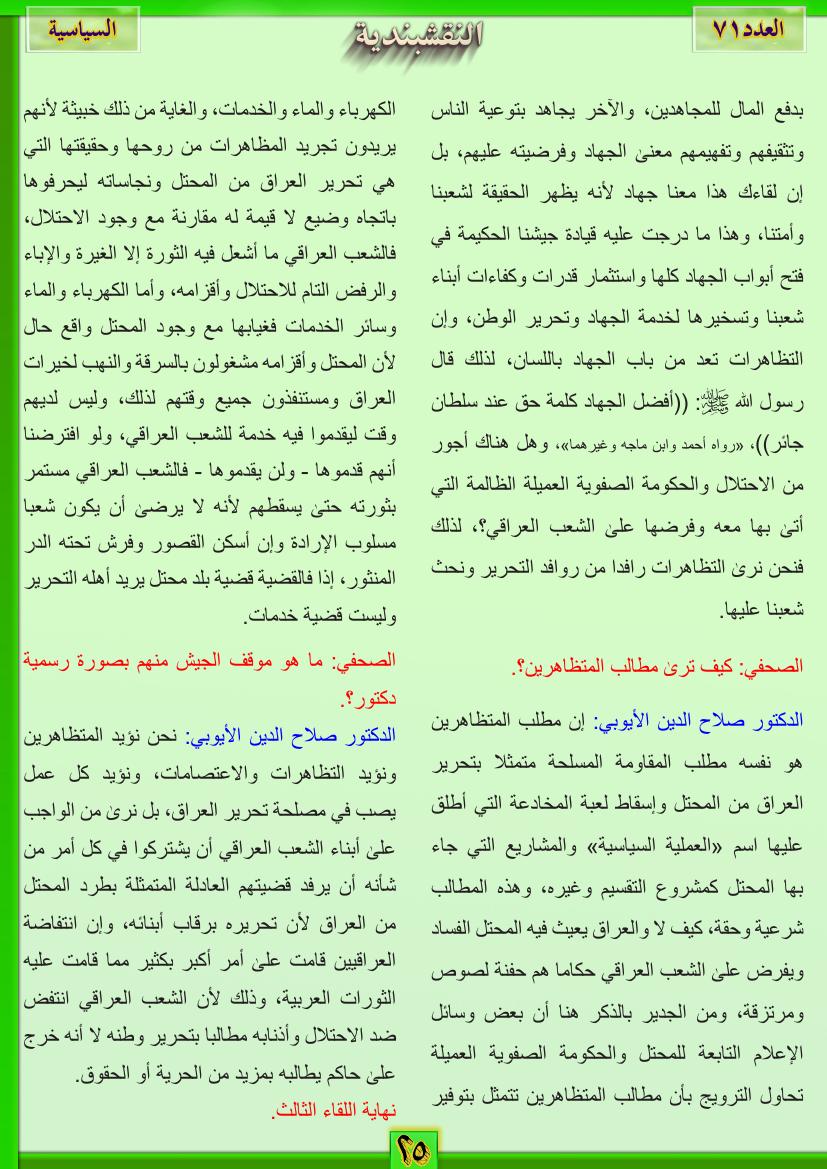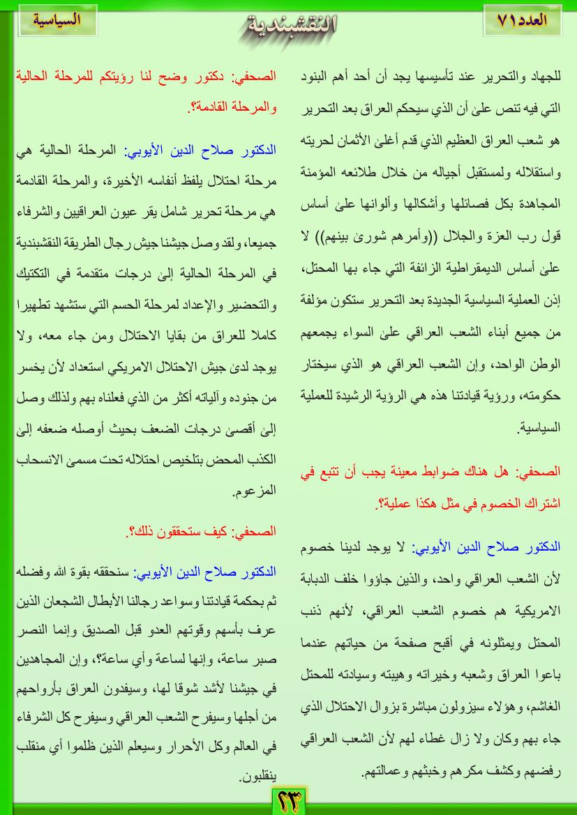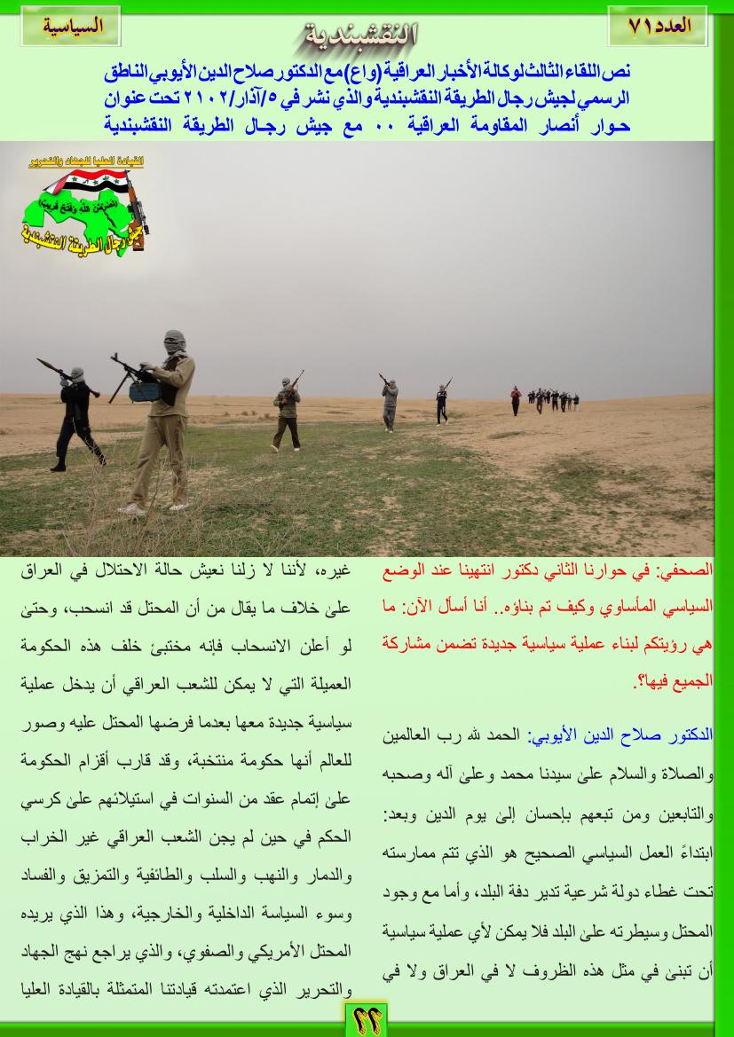 نص اللقاء الثالث لوكالة الأخبار العراقية (واع) مع الدكتور صلاح الدين الأيوبي الناطق الرسمي لجيش رجال الطريقة النقشبندية