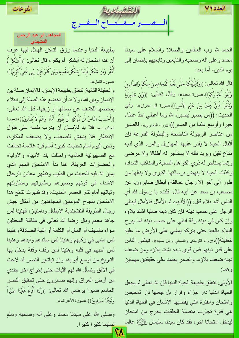 جانب من حديث أحد مشايخ الطريقة النقشبندية ( قدس الله سره )
