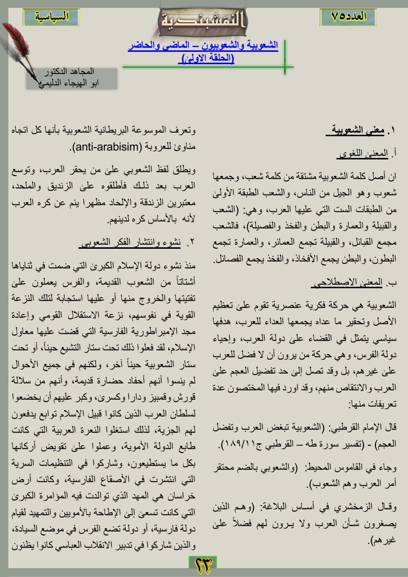 العدد الخامس والسبعون تصريح الناطق الرسمي لجيش رجال الطريقة النقشبندية الدكتور صلاح الدين الايوبي 12 نوفمبر، 201225 يونيو، 2019 تصريح الناطق الرسمي لجيش رجال الطريقة النقشبندية الدكتور صلاح الدين الايوبي ... قراءة المزيد