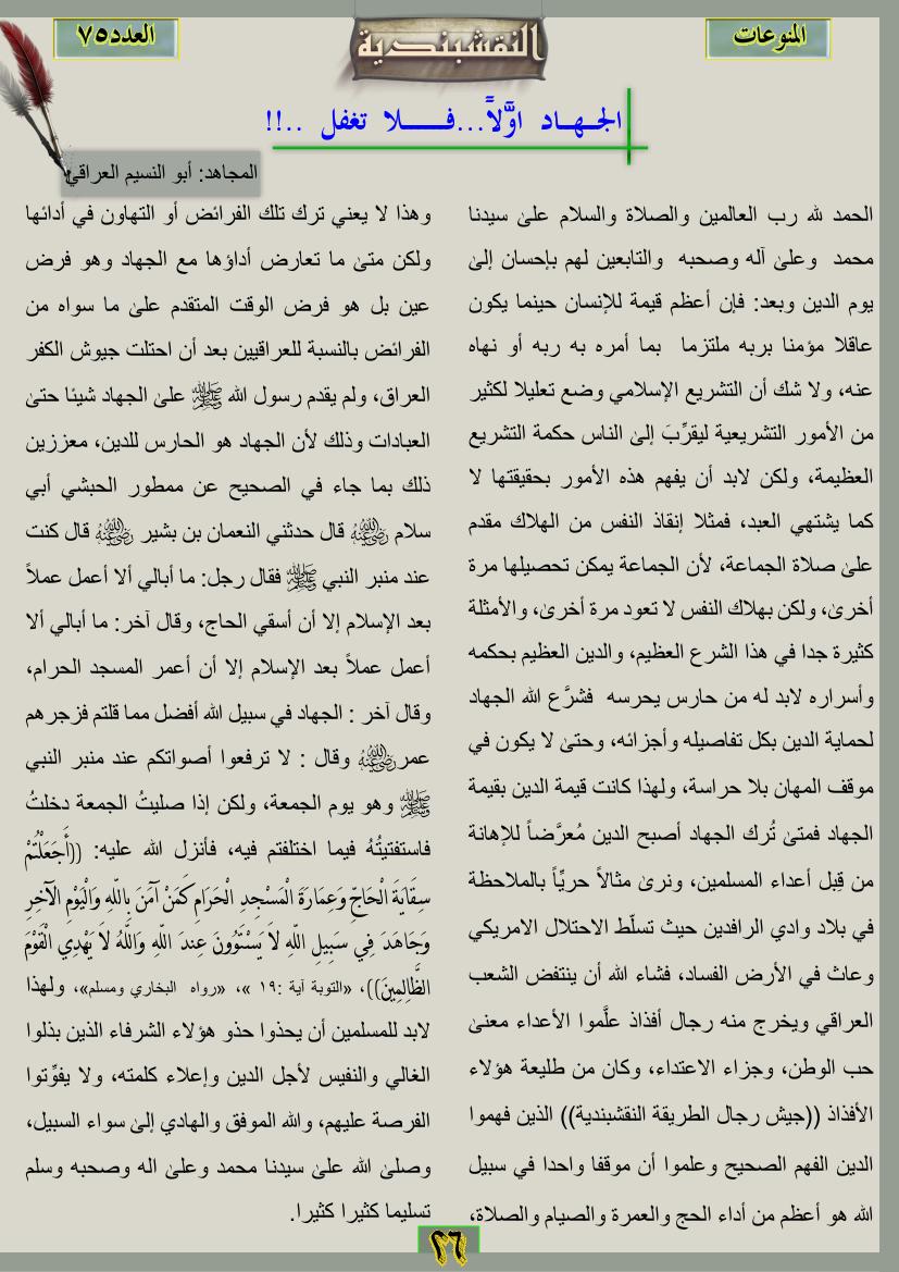 العدد الخامس والسبعون الجهاد اولاً … فلاتغفل ..!! 12 نوفمبر، 201225 يونيو، 2019 الجهاد اولاً … فلاتغفل ..!! ... قراءة المزيد