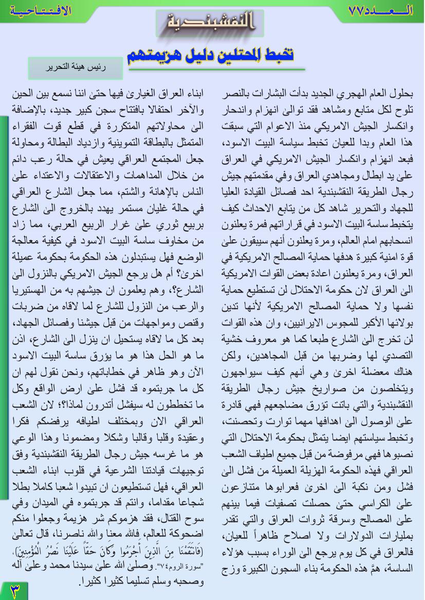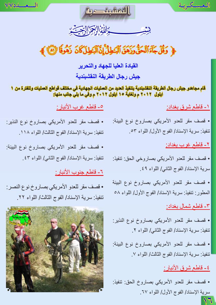 العدد السابع و السبعون جانب من العمليات الجهادية للفترة من 1 أيلول 2012م ولغاية 30 أيلول 2012م 29 ديسمبر، 201225 يونيو، 2019 جانب من العمليات الجهادية للفترة من 1 أيلول 2012م ولغاية 30 أيلول 2012م ... قراءة المزيد