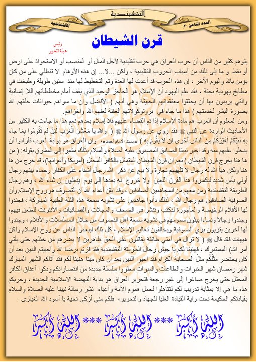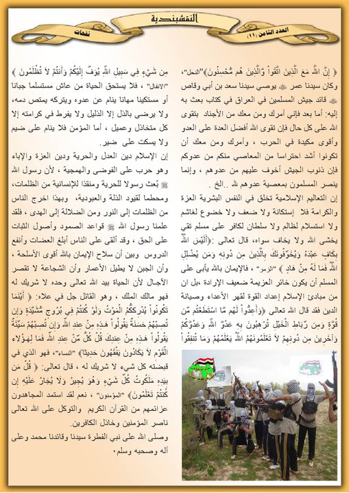 جانب من العمليات الجهادية لجيش رجال الطريقة النقشبندية للفترة من 1 تموز 2008 م ولغاية 31 تموز2008 م