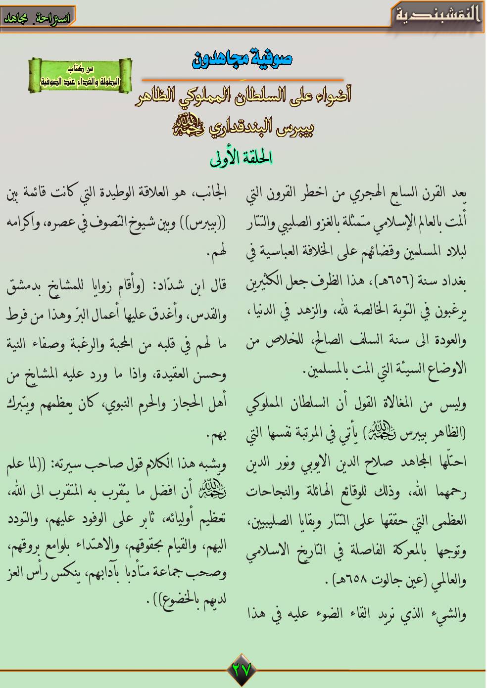 العدد الواحد والثمانون صوفية مجاهدون – أضواء على السلطان المملوكي الظاهر بيبرس البندقداري رحمه الله 17 يونيو، 201325 يونيو، 2019 صوفية مجاهدون أضواء على السلطان المملوكي الظاهر بيبرس البندقداري رحمه الله ... قراءة المزيد