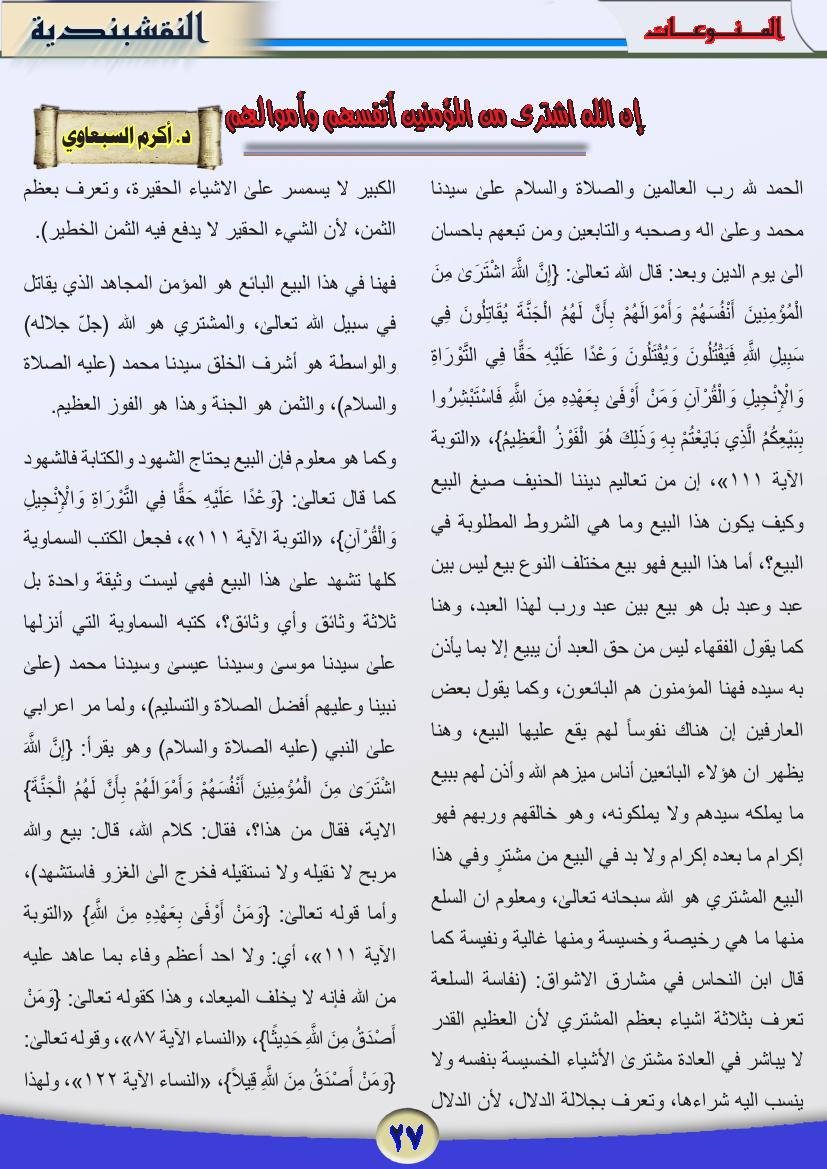 العدد الثامن والثمانون إن الله اشترى من المؤمنين أنفسهم وأموالهم 26 مايو، 201425 يونيو، 2019 إن الله اشترى من المؤمنين أنفسهم وأموالهم ... قراءة المزيد