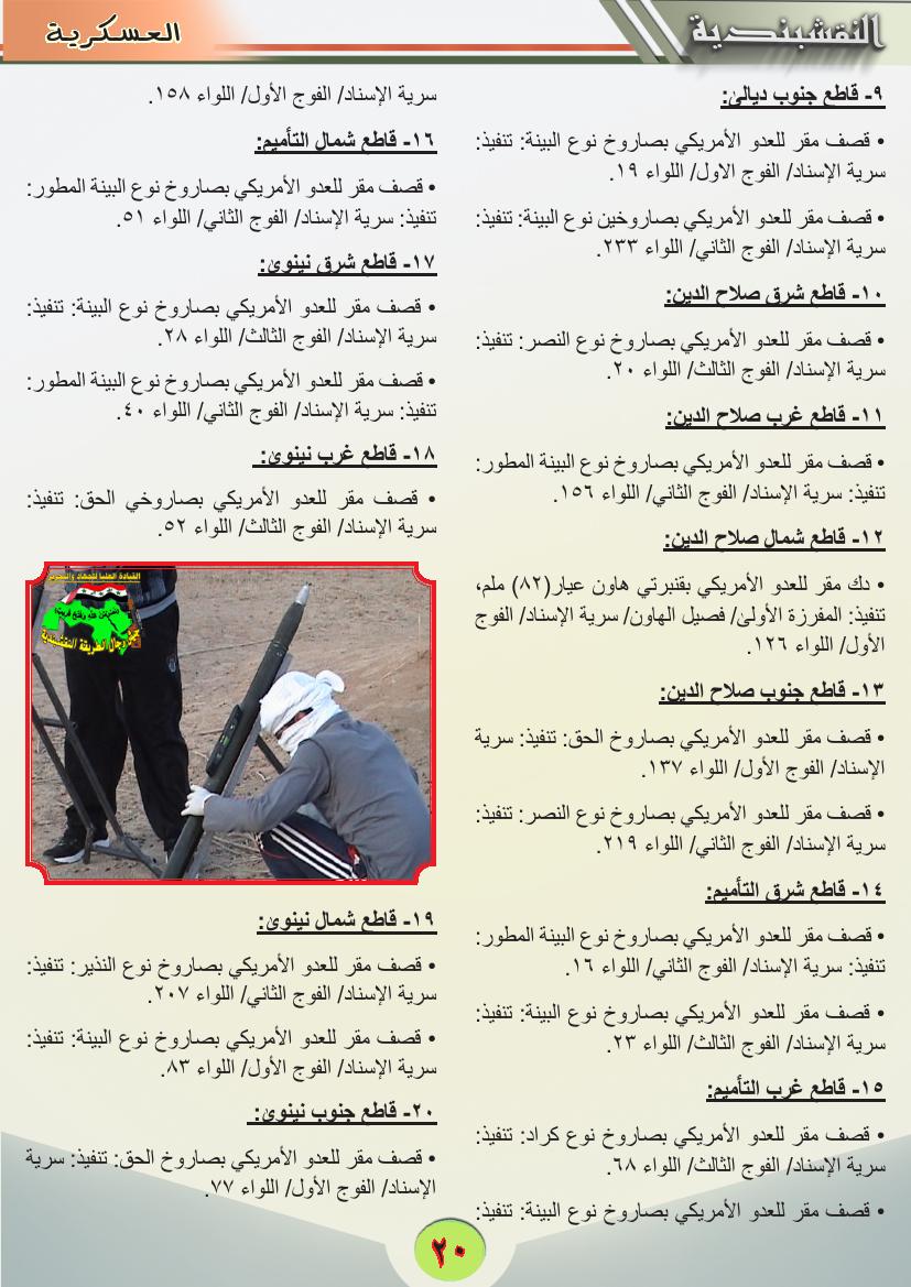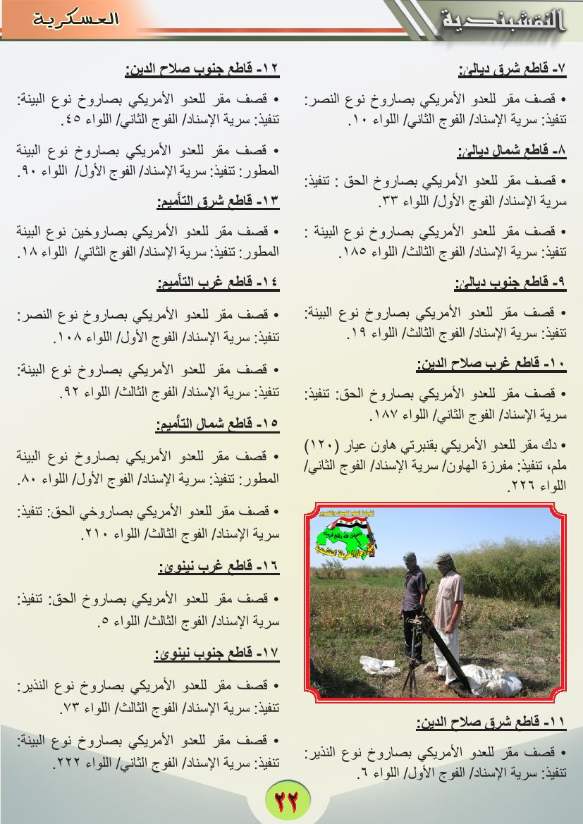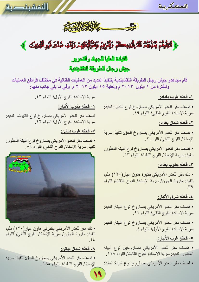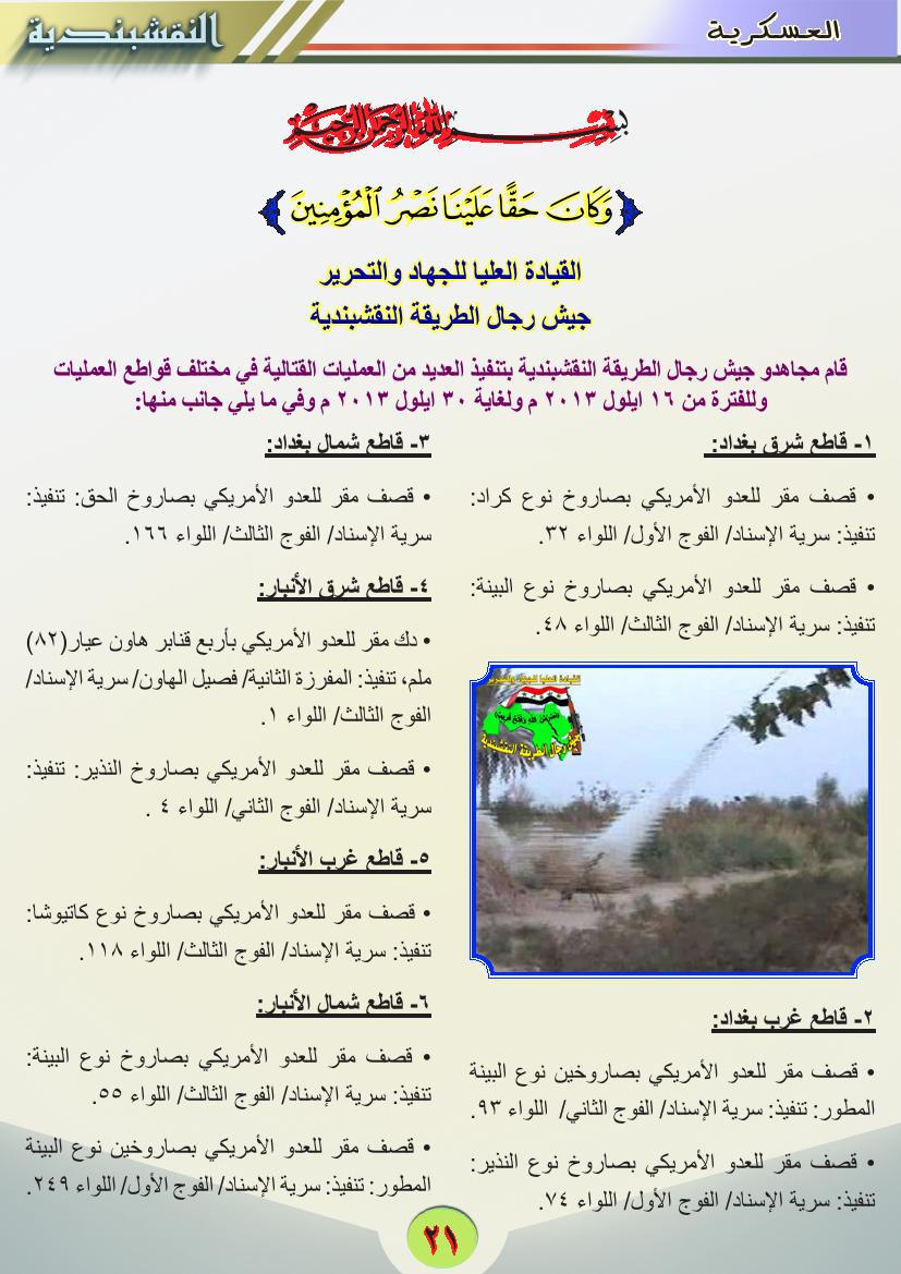 جانب من العمليات الجهادية لجيش رجال الطريقة النقشبندية للفترة من 1 ايلول 2013 ولغاية 30 ايلول 2013