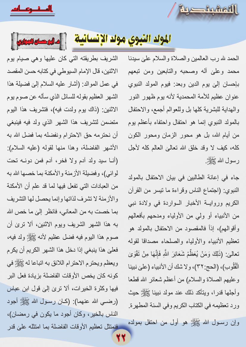 العدد التسعون المولد النبوي مولد الإنسانية 3 يناير، 201525 يونيو، 2019 المولد النبوي مولد الإنسانية ... قراءة المزيد