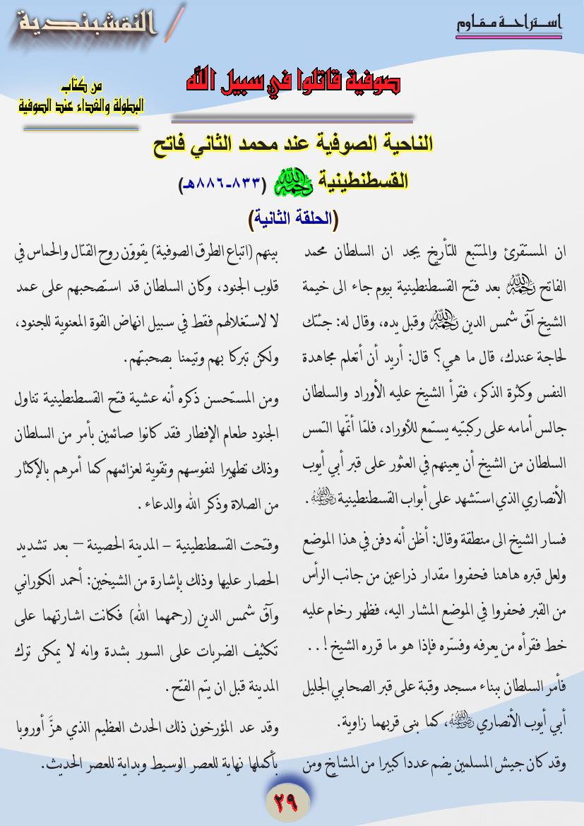 العدد التسعون صوفية مقاومون -الناحية الصوفية عند محمد الثاني فاتح القسطنطينية (رحمه الله) – الحلقة الثانية 3 يناير، 201525 يونيو، 2019 صوفية مقاومون -الناحية الصوفية عند محمد الثاني فاتح القسطنطينية (رحمه الله) – (الحلقة الثانية) ... قراءة المزيد