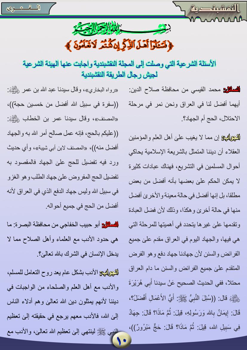 تسأل ونجيب أسئلة تجيب عنها الهيئة الشرعية لجيش رجال الطريقة النقشبندية 7 سبتمبر، 201325 يونيو، 2019 أسئلة تجيب عنها الهيئة الشرعية لجيش رجال الطريقة النقشبندية ... قراءة المزيد
