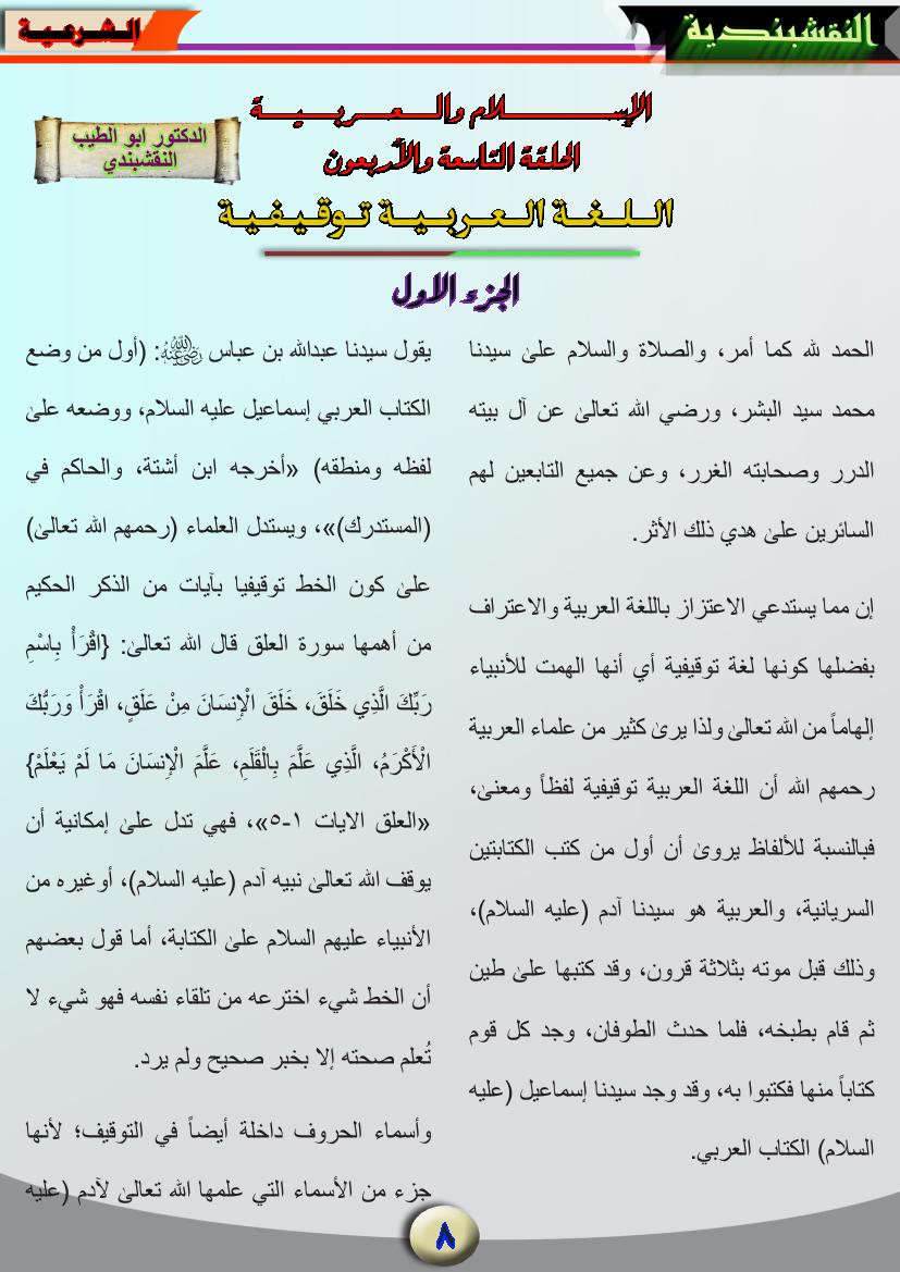 الإسلام والعربية الإسلام والعربية – الحلقة التاسعة والأربعون – اللغة العربية توقيفية – الجزء الأول 15 فبراير، 201425 يونيو، 2019 الإسلام والعربية ( الحلقة التاسعة والأربعون ) اللغة العربية توقيفية ( الجزء الأول ) ... قراءة المزيد