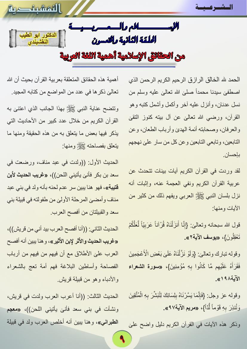 الإسلام والعربية الإسلام والعربية – الحلقة الثانية والخمسون – من الحقائق الإسلامية أهمية اللغة العربية. 24 أكتوبر، 201425 يونيو، 2019 الإسلام والعربية – الحلقة الثانية والخمسون – من الحقائق الإسلامية أهمية اللغة العربية ... قراءة المزيد