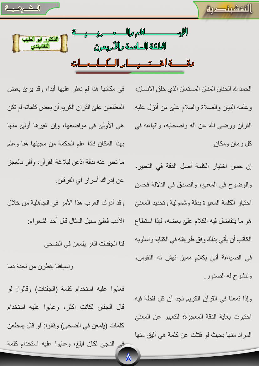 الإسلام والعربية الإسلام والعربية الحلقة السادسة والأربعون – دقة اختيار الكلمات 7 سبتمبر، 201325 يونيو، 2019 الإسلام والعربية الحلقة السادسة والأربعون – دقة اختيار الكلمات ... قراءة المزيد