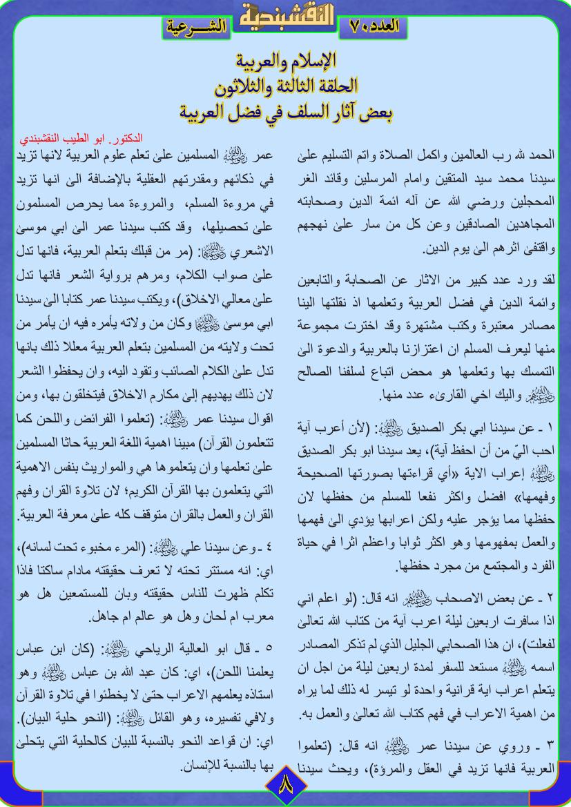 الإسلام والعربية الإسلام والعربية – الحلقة الثالثة والثلاثون – بعض آثار السلف في فضل العربية 2 يوليو، 201225 يونيو، 2019 الإسلام والعربية ( الحلقة الثالثة والثلاثون ) ( بعض آثار السلف في فضل العربية ) ... قراءة المزيد