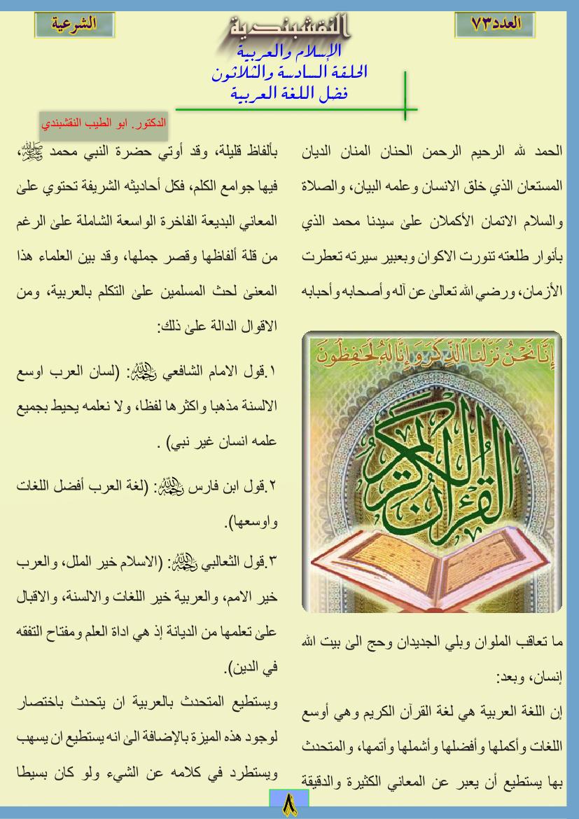 الإسلام والعربية الإسلام والعربية الحلقة الخامسة والعشرون -ثناء بعض العلماء على اللغة العربية 24 مايو، 201225 يونيو، 2019 الإسلام والعربية الحلقة الخامسة والعشرون ثناء بعض العلماء على اللغة العربية ... قراءة المزيد