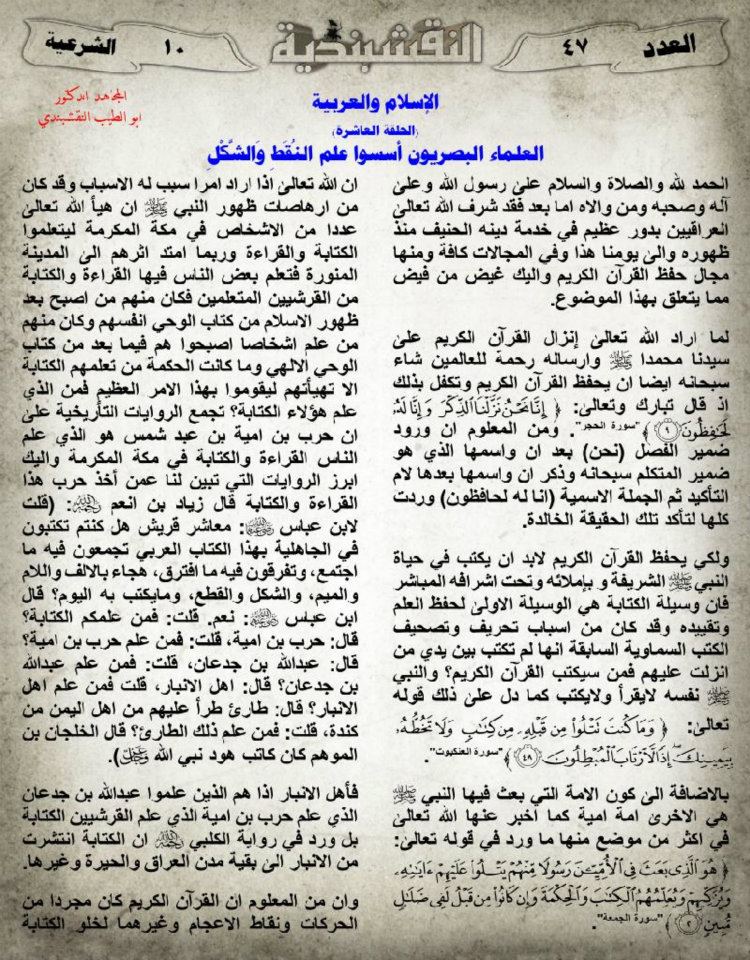 الإسلام والعربية الاسلام والعربية الحلقة العاشرة العلماء البصريون أسسوا علم النقط والشكل 24 مايو، 201225 يونيو، 2019 الاسلام والعربية الحلقة العاشرة العلماء البصريون أسسوا علم النقط والشكل ... قراءة المزيد