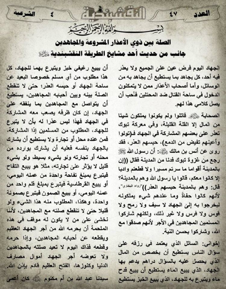 جانب من حديث مشايخ الطريقة النقشبندية الجهاد فرصة فلاتفتكم 21 مارس، 201225 يونيو، 2019 جانب من حديث أحد مشايخ الطريقة النقشبندية قدس الله سره الجهاد فرصة فلاتفتكم ... قراءة المزيد