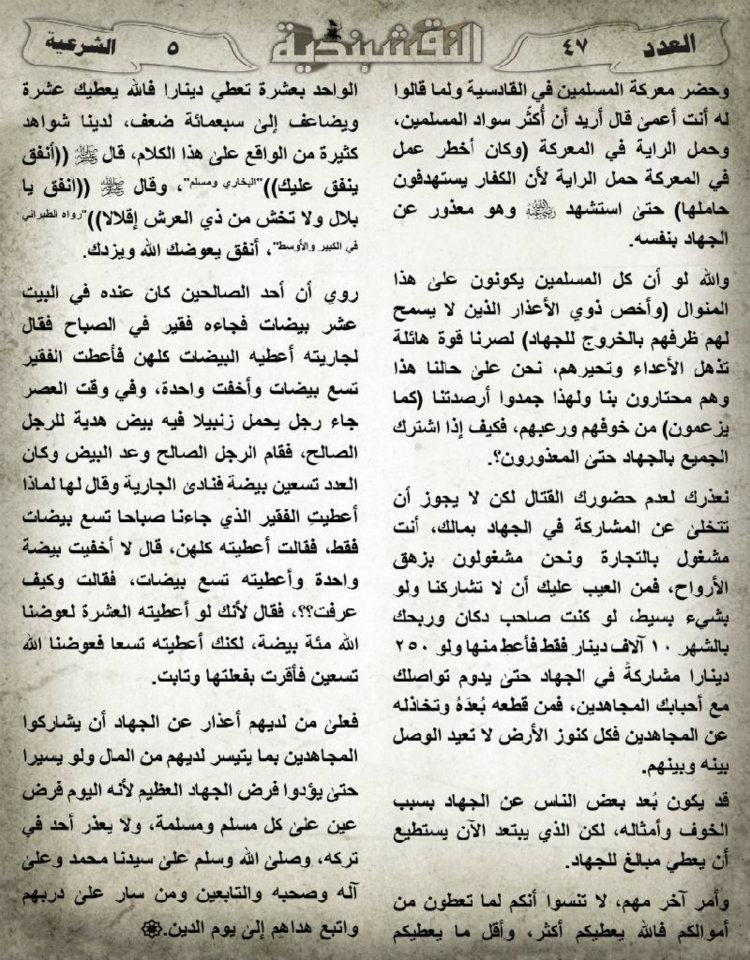 جانب من حديث مشايخ الطريقة النقشبندية التصدق للجهاد في سبيل الله 21 مارس، 201225 يونيو، 2019 التصدق للجهاد في سبيل الله جانب من حديث أحد مشايخ الطريقة النقشبندية قدس الله سره ... قراءة المزيد