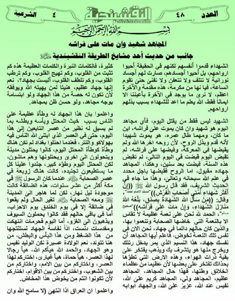 جانب من حديث مشايخ الطريقة النقشبندية المجاهد شهيد وان مات على فراشه 21 مارس، 201225 يونيو، 2019 المجاهد شهيد وان مات على فراشه جانب من حديث أحد مشايخ الطريقة النقشبندية قدس الله سره ... قراءة المزيد