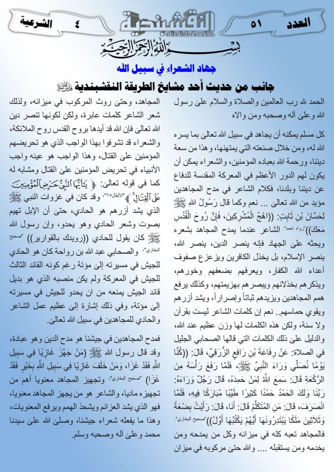 جانب من حديث مشايخ الطريقة النقشبندية جهاد الشعراء في سبيل الله 20 مارس، 201225 يونيو، 2019 جهاد الشعراء في سبيل الله جانب من حديث أحد مشايخ الطريقة النقشبندية قدس الله سره ... قراءة المزيد