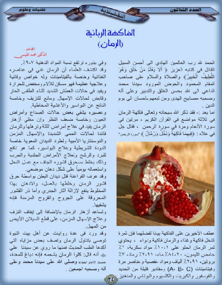 الاعجاز العلمي في القرآن الكريم الفاكهة الربانية ( الرمان ) 21 مارس، 201225 يونيو، 2019 الفاكهة الربانية ( الرمان ) ... قراءة المزيد