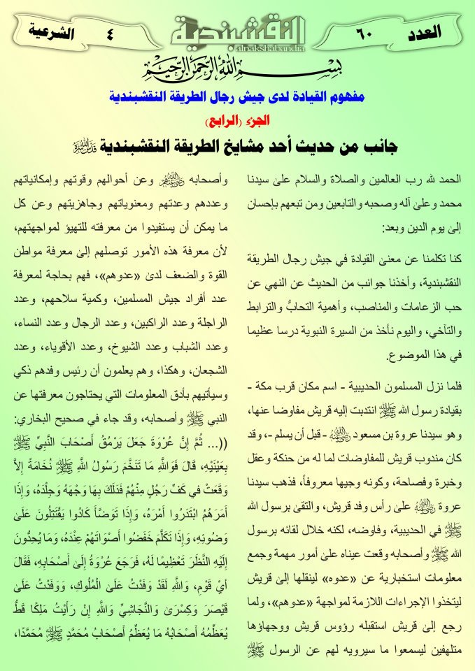 جانب من حديث مشايخ الطريقة النقشبندية مفهوم القيادة لدى جيش رجال الطريقة النقشبندية الجزء الرابع 7 يناير، 201225 يونيو، 2019 مفهوم القيادة لدى جيش رجال الطريقة النقشبندية الجزء الرابع ... قراءة المزيد