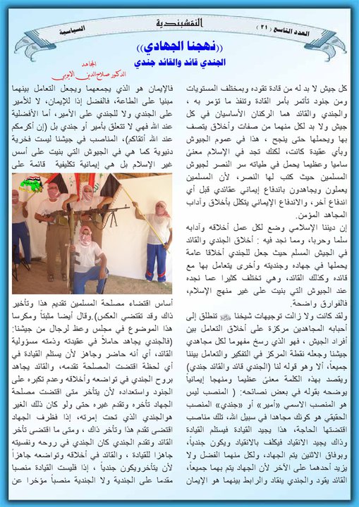 مقالات مختارة نهجنا الجهادي – الجندي قائد والقائد جندي 9 مايو، 201225 يونيو، 2019 نهجنا الجهادي – الجندي قائد والقائد جندي ... قراءة المزيد