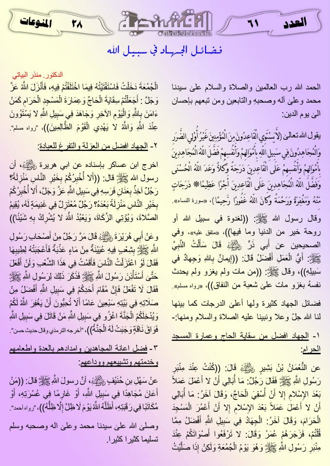 العدد الحادي والستون فضائل الجهاد في سبيل الله 6 يناير، 201225 يونيو، 2019 فضائل الجهاد في سبيل الله ... قراءة المزيد