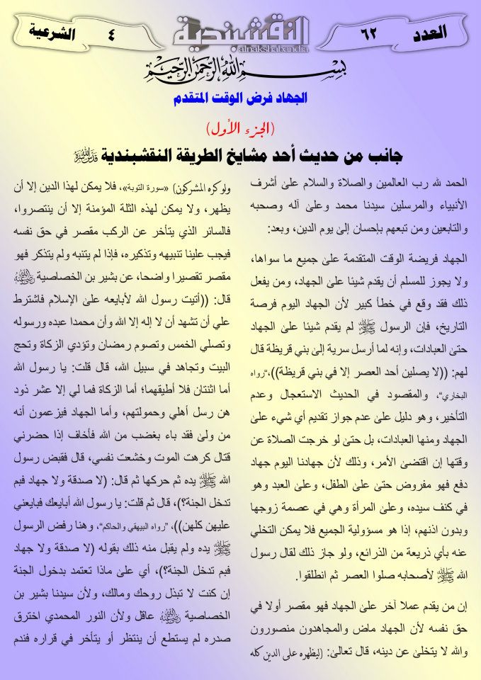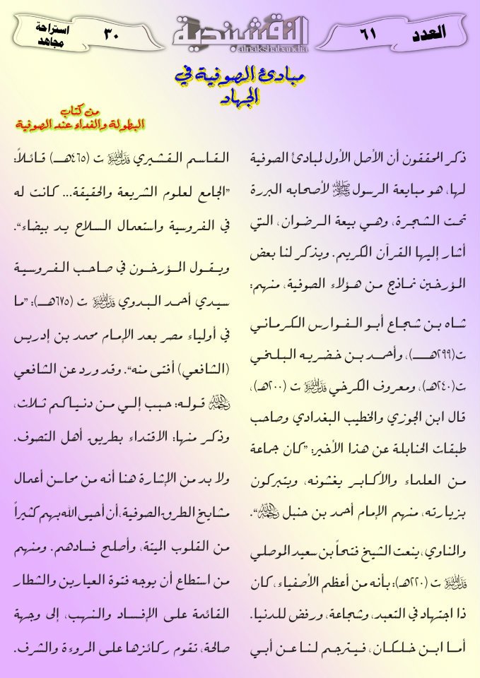 العدد الحادي والستون مبادئ الصوفية في الجهاد 5 يناير، 201225 يونيو، 2019 مبادئ الصوفية في الجهاد ... قراءة المزيد