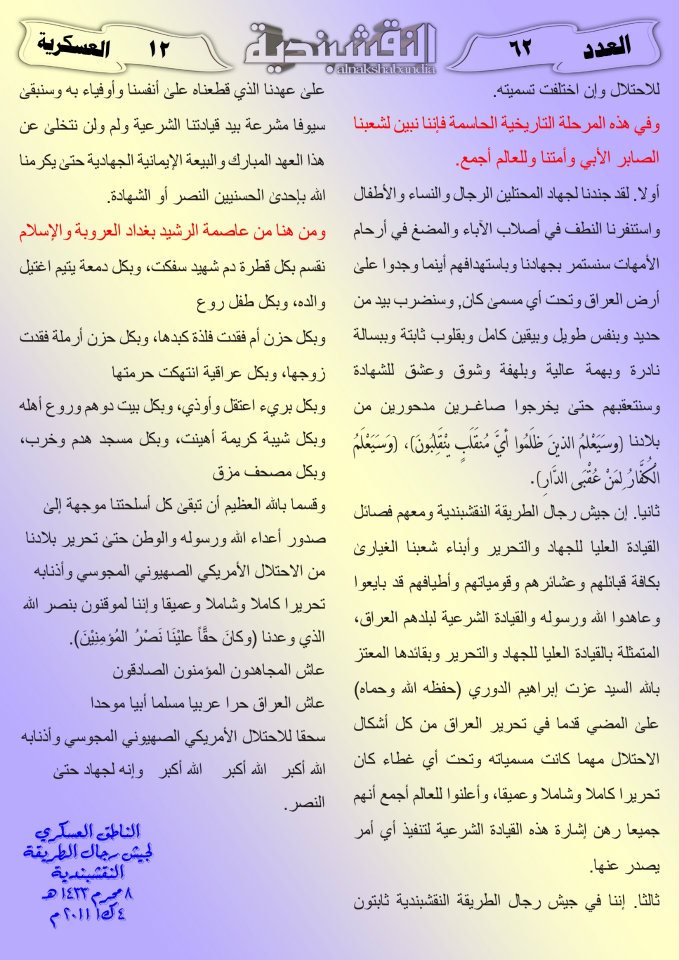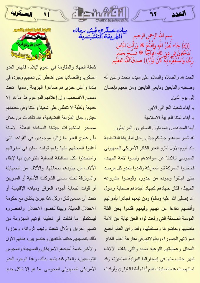 العدد الثاني والستون بيان عسكري لجيش رجال الطريقة النقشبندية 5 يناير، 201225 يونيو، 2019 بيان عسكري لجيش رجال الطريقة النقشبندية ... قراءة المزيد