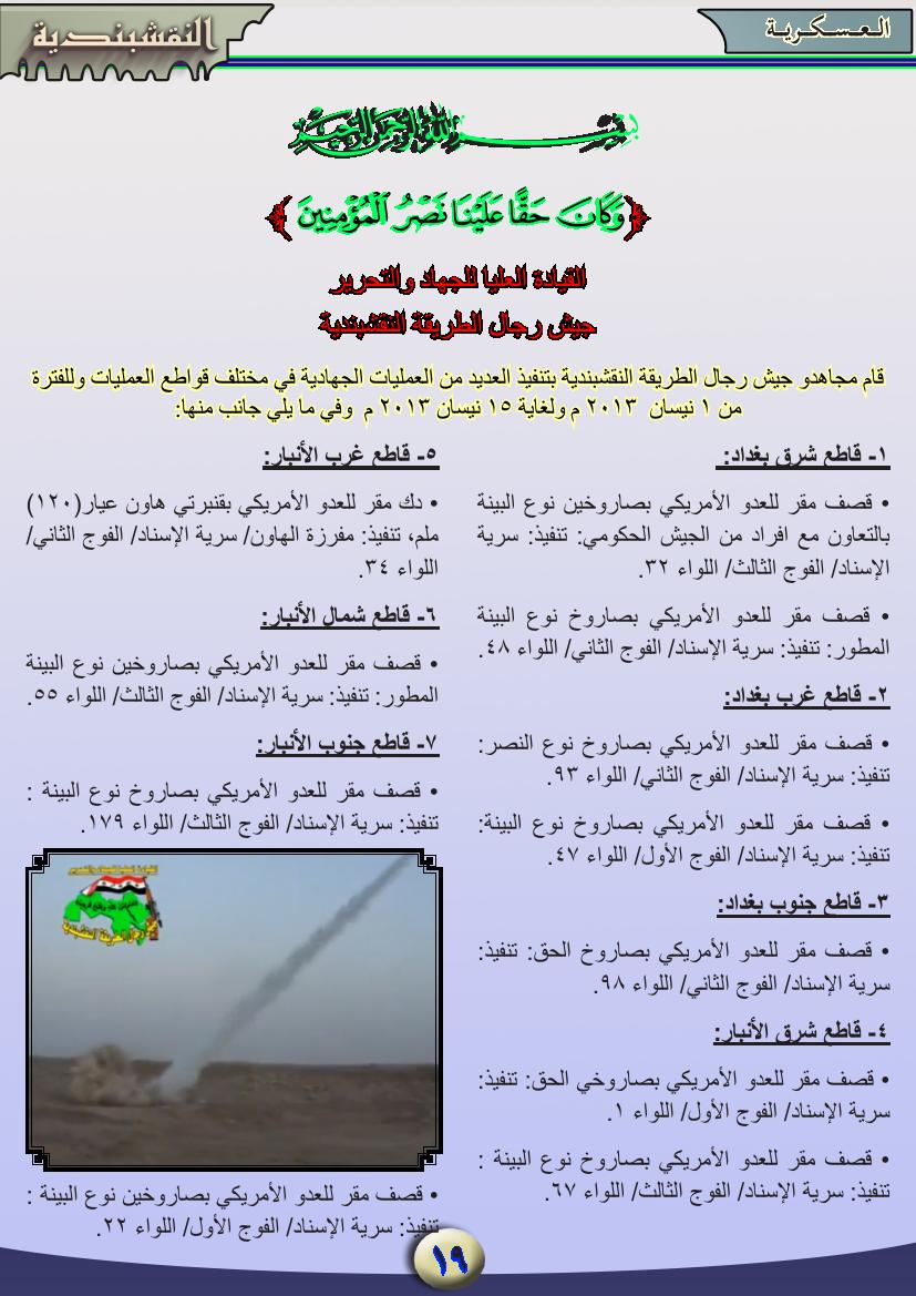 جانب من العمليات الجهادية لجيش رجال الطريقة النقشبندية للفترة من 1 نيسان 2013 ولغاية 30 نيسان2013